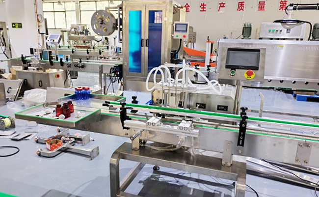 小型液體灌裝機(jī)生產(chǎn)線由四頭液體灌裝機(jī)、自動(dòng)理蓋上蓋旋蓋機(jī)、貼標(biāo)機(jī)以及鋁箔封口機(jī)組成,它們共同完成灌裝、旋蓋、貼標(biāo)、封口這些流程,輸送帶將每個(gè)設(shè)備連接在一起,減少中間的搬運(yùn)環(huán)節(jié),讓這個(gè)100ml小瓶酒精從空瓶到成品一氣呵成。液體灌裝機(jī)采用蠕動(dòng)泵自動(dòng)灌裝技術(shù),可自動(dòng)將液體產(chǎn)品灌入瓶子中,根據(jù)生產(chǎn)需求配置不同數(shù)量的灌裝頭,以提高灌裝效率,灌裝過(guò)程通過(guò)計(jì)量裝置精確控制,確保每個(gè)瓶子中的液體量一致;旋蓋機(jī)對(duì)灌裝完成的瓶子進(jìn)行封口處理,確保瓶蓋緊密固定;貼標(biāo)機(jī)在瓶子上貼附標(biāo)簽;鋁箔封口機(jī)通過(guò)電磁感應(yīng)產(chǎn)生高頻電流,使鋁箔片在瓶口處迅速發(fā)熱并熔合,形成密封。液體灌裝機(jī)廠家根據(jù)生產(chǎn)規(guī)模、包裝形式等需求,選擇可定制的灌裝機(jī)型號(hào)(如灌裝頭數(shù)、灌裝范圍等)。