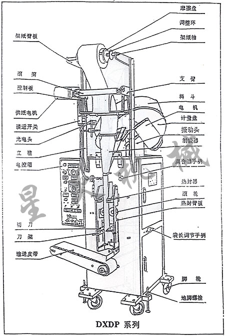 星火片劑自動包裝機結(jié)構(gòu)組成全稱線稿圖: