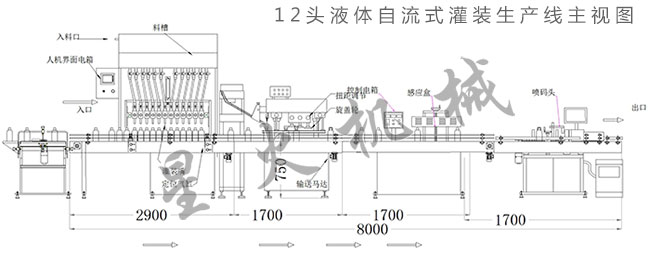 此條12頭液體自流式灌裝生產線是由12頭液體自流式灌裝機、自動上蓋旋蓋機、電磁感應鋁箔封口機、噴碼機等設備所組成,適合各種瓶裝液體的灌裝生產。