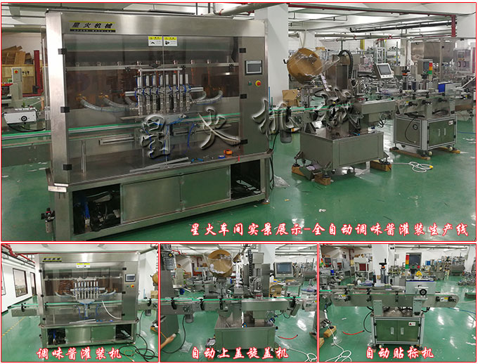隨著社會經濟的發展,各產業的發展也是突飛猛進,星火調味醬灌裝機當然也會更加專業,應用更加廣泛,配套使用能力也有所增加。該款調味醬灌裝機可與自動上蓋真空旋蓋機、自動貼標機、理瓶機、收瓶機等設備聯線使用,組成全自動調味醬灌裝生產線,為調味醬生產廠家提供翻倍的生產效率。