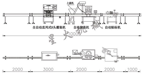 星火全自動瓶裝液體灌裝流水線結構特點: