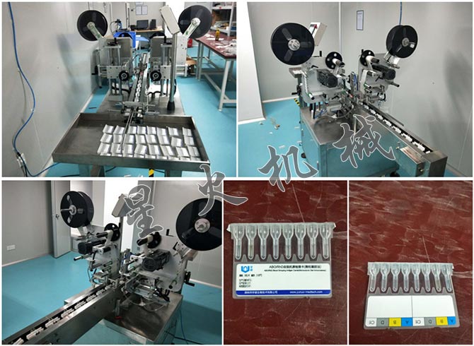 卡片自動貼標機生產現場以及試劑卡貼標樣品展示:
